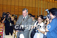 組圖:APEC中小企業(yè)工商論壇在上海閉幕 2001年08月30日 17:50 ![]() APEC中小企業(yè)工商論壇八月三十日在上海閉幕,圖為中訊集團公司董事長兼總裁毛杏春作總結(jié)報告。中新社記者 潘索菲 攝 ![]() APEC中小企業(yè)工商論壇八月三十日在上海閉幕,圖為與會的美國代表向記者介紹他參加論壇的成果。中新社記者 潘索菲 攝