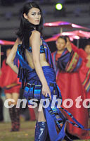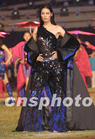![]() 大運會閉幕式三十日晚在北京工人體育場進行最后的彩排,中國名模于娜出演《歷代服飾》。中新社圖 劉殊瑾 攝