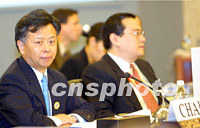組圖:第八屆APEC財(cái)長(zhǎng)會(huì)開幕 2001年09月06日 15:12 ![]() 第八屆APEC財(cái)政及央行副手會(huì)六日上午在中國(guó)蘇州市舉行。來(lái)自APEC二十一個(gè)經(jīng)濟(jì)體和三個(gè)國(guó)際經(jīng)濟(jì)組織的代表就會(huì)議各項(xiàng)議程進(jìn)行了討論。中新社記者 李剛 攝 ![]() 第八屆APEC財(cái)政及央行副手會(huì)六日在江蘇省蘇州市舉行,中國(guó)財(cái)政部副部長(zhǎng)、本屆會(huì)議主席金立群主持會(huì)議。中新社記者 李剛 攝