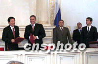 中俄在莫斯科發(fā)表總理第六次定期會(huì)晤聯(lián)合公報(bào) 2001年09月11日 19:30 ![]() 中國(guó)總理朱镕基與俄總理卡西亞諾夫九月八日在圣彼得堡簽署總理會(huì)晤聯(lián)合公報(bào)后互致祝賀。雙方于十一日在俄首都莫斯科發(fā)表了該聯(lián)合公報(bào)。中新社記者 孟慶雷 攝