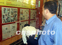 圖文:香港市民搶閱號外 對美被襲眾說紛紜 2001年09月13日 03:50 ![]() 昨日美國遭受歷史上最嚴(yán)重的恐怖襲擊后,今日一大早香港市民就聚集到報館的櫥窗前觀看有關(guān)情況。中新社記者 任海霞 攝 ![]() 9月12日上午,一名香港市民在匯豐銀行總部前的大獅子前閱讀美國局勢的報紙。中新社圖 任晨鳴 攝