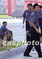 圖:南京建國以來首次施行一級安保 2001年09月16日 15:43 ![]() 第六屆華商大會即將在南京開幕,十六日清晨四只防暴犬在警員的帶領(lǐng)下對主會場進行全面勘察,這是南京市建國以來首次實施國家一級安保措施。中新社記者 鄭萍萍 攝 |