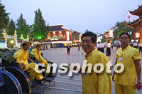 圖:黃包車夫夫子廟迎接華商大會(huì)代表 2001年09月17日 22:42 ![]() 舊式裝扮的黃包車夫十七日晚在南京夫子廟迎候來(lái)游覽的第六屆華商大會(huì)代表。中新社記者 李剛 攝 |