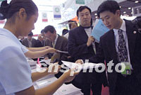 圖:華商大會中國經(jīng)濟(jì)論壇開講 2001年09月19日 11:46 ![]() 第六屆世界華商大會“中國經(jīng)濟(jì)論壇”即將開幕,中國外經(jīng)貿(mào)部長石廣生等將在會上演講,代表們?nèi)雸銮盃幭阮I(lǐng)取發(fā)言稿。中新社記者 鄭萍萍 攝 |