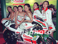 圖:靚女為車展做宣傳 2001年09月20日 10:43 ![]() 2001年亞洲公路摩托車錦標賽日前在廣東珠海國際賽車場舉行,英國著名的嘉實多公司出巨資贊助在中國的此項賽事,并選用靚女為其做品牌宣傳。中新社記者 趙振清 攝 |