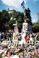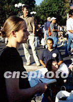 組圖:曼哈頓聯(lián)合廣場成公眾悼念場所 2001年09月22日 13:38 ![]() 曼哈頓下城,離世貿(mào)中心不遠(yuǎn)處的聯(lián)合廣場,“九一一”以來成為紐約客悼念死難者的場所。這里遍地是花束、燭臺(tái)、國旗和失蹤者的像片,整日人來人往,昔日各種街頭露天表演不復(fù)見。中新社記者 郭健 攝 ![]() 自發(fā)悼念“九一一”遇難者是眼下紐約的特殊景觀。這位女畫家正在作現(xiàn)場速寫。中新社記者 郭健 攝