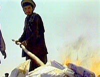 圖:美兵壓境阿富汗內(nèi)戰(zhàn)更趨激烈 2001年09月27日 14:36 ![]() 在美國(guó)大兵壓境的背景下,阿富汗北方聯(lián)盟和塔利班之間的內(nèi)戰(zhàn)日前更趨激烈。圖為北方聯(lián)盟士兵在焚燒從塔利班控制地區(qū)內(nèi)搜獲的海洛因,海洛因據(jù)稱是拉登恐怖組織重要的資金來源。 |
