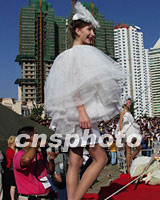 圖:俄羅斯模特展風采 2001年10月07日 19:03 ![]() 國慶節(jié)假期間,青島市政府在繁華的五四廣場舉行大型時裝表演。圖為來自俄羅斯的模特在臺上一展風采。中新社記者 錢興強 攝 |