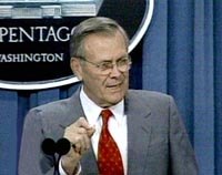 圖:美國(guó)防部長(zhǎng)說(shuō):不能讓塔利班做恐怖分子的港灣 2001年10月08日 10:36 ![]() 美國(guó)東部時(shí)間十月七日上午,美國(guó)國(guó)防部長(zhǎng)拉姆斯菲爾德在五角大樓的新聞發(fā)布會(huì)上說(shuō):美國(guó)今天對(duì)阿富汗進(jìn)行軍事攻擊,目標(biāo)是讓恐怖分子無(wú)法再使用塔利班作為他們的港灣。攻擊目標(biāo)主要是塔利班的機(jī)場(chǎng),還有其它的軍事設(shè)施和軍事基地。 |