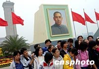 圖:中山像前紀(jì)念辛亥革命九十周年 2001年10月09日 10:32 ![]() 一班少男少女們十月歡聚在北京天安門廣場(chǎng)上的巨幅孫中山先生畫像前,游覽中懷念辛亥革命的先驅(qū)。中新社記者 賈國(guó)榮 攝 |