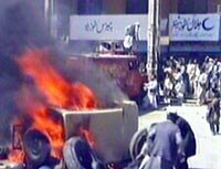 圖:巴反美示威演變成騷亂 2001年10月09日 10:36 ![]() 美英八日開始對阿富汗進行軍事打擊后,巴基斯坦爆發(fā)了大規(guī)模的示威游行,并演變?yōu)轵}亂。憤怒的民眾襲擊了聯(lián)合國兒童基金會和聯(lián)合國難民署駐當?shù)氐慕ㄖ铩?/p> |