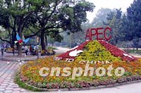 圖:APEC標識上海處處可見 2001年10月10日 10:50 ![]() 在上海街頭APEC會議準備氣氛越來越濃,無論在南京路、淮海路,還是外灘,APEC標識不時映入路人眼簾。中新社記者 潘索菲 攝 |