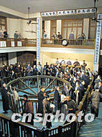 圖:舊上海證券交易景觀亮相滬上 2001年10月13日 14:51 ![]() 上海城市歷史陳列館以其真實生動的形象近期亮相上海,成為都市一大景觀,估計該陳列館將成為APEC參觀亮點之一。圖為其中展示的舊上海證券交易場景。中新社記者 潘索菲 攝 |