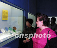 圖:菲律賓副總統(tǒng)兼外長夫人等參觀上海博物館 2001年10月17日 14:02 ![]() APEC雙部長會(huì)議十月十七日在上海開幕。圖為菲律賓副總統(tǒng)兼外長的夫人等貴賓參觀上海博物館的瓷器精品。中新社記者 潘索菲 攝 |