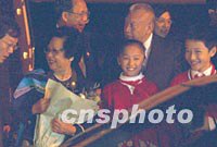 圖:香港特首董建華和夫人抵滬 2001年10月17日 22:01 ![]() 香港特首董建華和夫人十七日晚飛抵上海虹橋機場出席APEC峰會,國家計委主任曾培炎帶領(lǐng)獻花兒童到飛機前迎接。中新社記者 賈國榮 攝 |