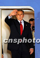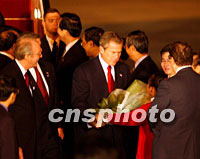 ![]() 10月18日,美國(guó)總統(tǒng)布什抵達(dá)上海浦東國(guó)際機(jī)場(chǎng),前來(lái)參加亞太經(jīng)合組織領(lǐng)導(dǎo)人非正式會(huì)議。這是美國(guó)總統(tǒng)布什下飛機(jī)后接受獻(xiàn)花。中新社圖 ![]() 美國(guó)總統(tǒng)布什乘坐空軍一號(hào)專(zhuān)機(jī)十八日晚飛抵上海浦東國(guó)際機(jī)場(chǎng),與向他獻(xiàn)花的上海小故娘合影留念。