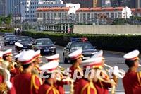 組圖:APEC樂手準備奏樂迎賓 2001年10月20日 16:01 ![]() 身著禮服的樂手二十日守侯在東方明珠的APEC標志牌下,等候執(zhí)行奏樂迎賓的任務(wù)。中新社圖 劉殊瑾 攝 ![]() 出席APEC第九次領(lǐng)導人非正式會議的各經(jīng)濟體首腦二十日下午來到上海國際會議中心參加盛會,圖為載著領(lǐng)導人的國賓車隊依次駛?cè)霑䦂鐾局小?中新社記者 潘索菲 攝