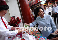 圖:董建華夫人選購上海小吃 2001年10月20日 18:55 ![]() 出席APEC會議的經(jīng)濟(jì)體領(lǐng)導(dǎo)人配偶二十日在上海豫園游覽,香港特區(qū)行政長官董建華夫人董趙洪娉抽空選購上海小吃鴨肝。中新社記者 王瑤 攝 |
