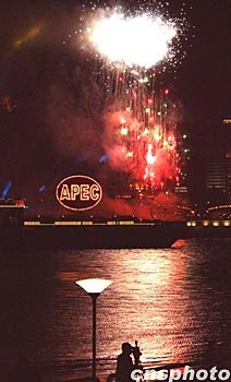 圖:上海浦江APEC煙火之夜 2001年10月20日 23:02 ![]() 上海APEC峰會(huì)之夜煙火如花。中新社記者 賈國榮 攝