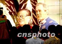 組圖:布什穿中式服裝亮相APEC峰會(huì) 2001年10月21日 11:31 ![]() 美國總統(tǒng)布什身穿藍(lán)色中式對襟服裝走出特制專用轎車,出席二十一日的上海APEC峰會(huì)。中外記者聚集在現(xiàn)場直播的電視屏幕前,進(jìn)行同步報(bào)道。中新社記者 賈國榮 攝 ![]() 十月二十一日清晨,中外記者聚集在上海國際新聞中心現(xiàn)場直播的電視屏幕前,關(guān)注中國國家主席江澤民身著紅色中式對襟服,迎接身穿藍(lán)色中式對襟服的美國總統(tǒng)布什,進(jìn)行出席上海APEC峰會(huì)。中新社記者 賈國榮 攝