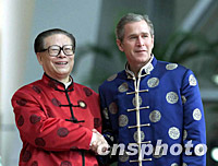 圖:江澤民在上?萍拣^迎接布什 2001年10月21日 17:25 ![]() 10月21日,中國國家主席江澤民在上?萍拣^迎接美國總統(tǒng)布什。亞太經(jīng)合組織第九次領(lǐng)導(dǎo)人非正式會議在這里舉行。中新社圖 |