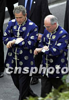 圖:霍華德與布什不約而同看時(shí)間 2001年10月21日 17:43 ![]() 10月21日,出席亞太經(jīng)合組織領(lǐng)導(dǎo)人非正式會(huì)議的澳大利亞總理霍華德與美國(guó)總統(tǒng)布什不約而同看時(shí)間。中新社圖 |