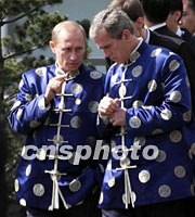 圖:普京與布什交談 2001年10月21日 22:32 ![]() 10月21日,出席亞太經(jīng)合組織領(lǐng)導(dǎo)人非正式會議的俄羅斯總統(tǒng)普京和美國總統(tǒng)布什在會議間隙交談。中新社圖 |