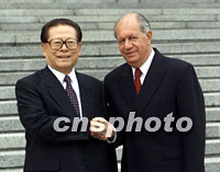 江澤民說,打擊恐怖主義是一項(xiàng)長期艱巨任務(wù) 2001年10月23日 21:04 ![]() 國家主席江澤民二十三日在北京歡迎來訪的智利總統(tǒng)拉戈斯。中新社記者 滿會喬 攝