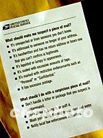 本網(wǎng)特稿:奪命孢子牽動(dòng)美國(guó)“神經(jīng)”(附圖) 2001年11月05日 15:02 ![]() 十余例由信件引起的炭疽病菌感染已造成美國(guó)民眾的恐慌心理,美國(guó)郵政總局局長(zhǎng)波特向全美一億四千七百多個(gè)郵件地址發(fā)出明信片,它提醒民眾小心處理郵件。該圖是明信片的背面,它告誡人們哪些郵件值得懷疑;如何處理有懷疑的郵件。中新社 徐德金 攝 ![]() 1998年挪威的特隆郝姆警察博物館館長(zhǎng)發(fā)現(xiàn)了一塵封已久的玻璃瓶,標(biāo)簽上寫(xiě)著“一塊糖中藏有炭疽菌--1917年Otto Karl von Rosen男爵作為間諜嫌疑時(shí)從他的行李中發(fā)現(xiàn)的”。英國(guó)科學(xué)家與挪威微生物科學(xué)家檢測(cè)證實(shí),它是恐怖的B型炭疽。顧建文攝