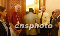 圖:美國代表團(tuán)新聞發(fā)布會(huì)僅對(duì)少量記者開放 2001年11月09日 19:58 ![]() 第四屆WTO部長會(huì)議當(dāng)?shù)貢r(shí)間九日下午五點(diǎn)半在卡塔爾首都多哈開幕,美國代表團(tuán)九日亦舉行新聞發(fā)布會(huì),但僅對(duì)少量記者開放,許多聞?dòng)嵍鴣淼挠浾弑痪苤T外。中新社記者 錢興強(qiáng) 攝 |