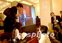 ![]() WTO多哈會議10日晚審議通過了中國入世,中國代表團團長石廣生、副團長龍永圖出席會議。中新社記者 錢興強 攝 ![]() 世界貿易組織(WTO)第四屆部長級會議10日晚審議通過了中國加入世界貿易組織。圖為會議新聞中心的記者們在觀看電視直播。中新社記者 錢興強 攝
