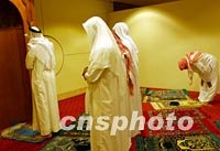 圖:WTO多哈會議上穆斯林教徒每天虔誠祈禱 2001年11月12日 11:21 ![]() 在卡塔爾首都多哈舉行的第四屆WTO部長級會議上,來自阿拉伯國家的穆斯林教徒每天虔誠進行祈禱。中新社記者 錢興強 攝 |