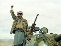 圖:北方聯(lián)盟士兵歡慶勝利攻占塔盧坎 2001年11月12日 11:22 ![]() 阿富汗北方聯(lián)盟一名士兵十二日在坦克上歡慶勝利。阿富汗北方聯(lián)盟日前氣勢(shì)如虹,繼奪取北部重鎮(zhèn)馬扎里沙里夫和北部四個(gè)省份后,宣稱又攻占了前首都塔盧坎。 |