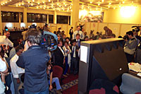 組圖:多哈會(huì)議記者關(guān)注美國(guó)飛機(jī)墜毀事件 2001年11月12日 23:28 ![]() 美國(guó)最新撞機(jī)事件發(fā)生后,多哈WTO會(huì)議新聞中心的記者們紛紛停下手頭的工作,圍在電視屏幕前看現(xiàn)場(chǎng)直播。中新社記者 余東暉 攝 ![]() 美國(guó)最新撞機(jī)事件發(fā)生后,多哈WTO會(huì)議新聞中心的記者們紛紛停下手頭的工作,圍在電視屏幕前看現(xiàn)場(chǎng)直播。中新社記者 余東暉 攝