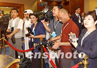 圖:各國記者關(guān)注中國臺北加入世貿(mào)組織 2001年11月13日 10:18 ![]() 第四屆WTO部長級會議十二日在多哈舉行中國臺北加入世貿(mào)組織議定書簽字儀式。中國臺北成為世界貿(mào)易組織第144個成員國。圖為采訪簽字儀式的各國記者。中新社記者 錢興強 攝 |