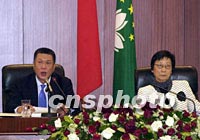 何厚鏵稱,過去一年澳門市民生活有序安定(附圖) 2001年11月20日 22:00 ![]() 澳門特區(qū)行政長官何厚鏵(左),二十日代表特區(qū)政府在立法會大樓作二零零二年施政報(bào)告。中新社記者 宗金柱 攝