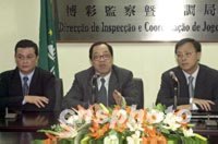 譚伯源:將建議何厚鏵延長澳門現(xiàn)有博彩專營合約 2001年12月15日 08:04 ![]() 澳門特區(qū)政府財政經(jīng)濟司司長譚伯源,十四日在新聞發(fā)布會上向記者介紹有關(guān)審察博彩競標標書的最新進展情況時表示,將建議行政長官把現(xiàn)有的博彩專營合約延長三個月。中新社傳真 宗金柱 攝