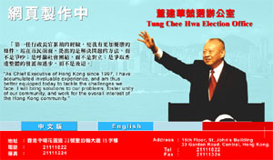圖文:董建華競選網(wǎng)站將推出 可與市民電郵互動 2002年01月15日 15:02 ![]() 董建華的競選網(wǎng)站目前仍在建設(shè)中。 中新網(wǎng)香港1月15日消息:香港行政長官董建華的競選網(wǎng)站()將在本星期面世,目前網(wǎng)頁的設(shè)計(jì)已大致完成,現(xiàn)正進(jìn)行測試。 網(wǎng)站的主要內(nèi)容則包括介紹董建華生平、董宣布參選連任時(shí)的演辭撮要、辦公室發(fā)出的新聞稿、辦公室安排的競選活動、與市民的互動電郵服務(wù)等。 董建華競選辦公室公關(guān)組副主任楊志剛表示,在競選網(wǎng)站上有互動“電郵”連結(jié),市民一按便可以直接聯(lián)系到他們,發(fā)表意見。 董建華于2001年12月13日正式宣布參加競選第二任香港特別行政區(qū)行政長官。 |