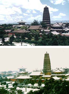 新聞背景知識:阿育王寺和中國的法門寺 2002年02月20日 20:03 ![]() 不同季節(jié)的法門寺 中新網(wǎng)北京2月20日消息:釋迦牟尼佛在世時,信眾就對佛身體上任何部分都視為圣物。佛涅槃后,周邊八個小國的國王曾率軍隊爭奪舍利,后被一個香姓婆羅門勸解,并主持將舍利分成八份,各自請回供奉。 釋迦牟尼佛涅槃后一百多年,古印度有個國王叫阿育王的崇信佛教,曾廣泛建立佛塔以供奉佛舍利。人們將這些塔統(tǒng)稱為阿育王塔。 據(jù)隋《歷代三寶記》、唐《破邪論》等佛典記載古印度阿育王曾在很大的地域范圍內(nèi)建筑佛舍利塔。據(jù)傳中國境內(nèi)有十九處,都稱中國江漢左右、關(guān)隴西東有阿育王塔。扶風(fēng)阿育王塔即為其一。法門寺初建于東漢年間,先有佛塔后建佛寺,所以最初便因阿育王塔而名阿育王寺,后唐高祖李淵賜名法門寺。 唐代法門寺寶塔為四級木塔,明代隆慶年間(公元1567—1572年)唐代木塔崩塌。明神宗萬歷七年至三十七年(1579—1609)重建八角十三級磚塔一座,塔高四十七米。一九八一年八月二十四日在邊綿霪雨中明代磚塔塔身自上而下崩塌一半。 一九八六年十月,文物部門決定撥款重修寶塔。一九八七年四月在清理塔基時,發(fā)現(xiàn)唐代地宮并出土佛指舍利和大量唐代稀世珍寶。唐朝幾代帝王都曾予以修葺。懿宗時又加以擴(kuò)建。地宮全長21.12m,面積為31.84m2。整個地宮由踏步臺階、平臺、甬道、前室、中室、后室、秘龕七部分組成,以五道石門相隔。這個地宮曾得到唐王朝歷代皇帝的重視,給予多次修葺。
