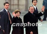 圖:美國總統(tǒng)布什抵達北京 2002年02月21日 11:07 ![]() 美國總統(tǒng)布什與夫人二十一日上午抵達北京首都國際機場,開始為期兩天的工作訪問。中新社圖 毛建軍 攝