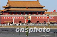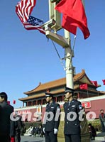![]() 美國總統(tǒng)布什二月二十一日來華訪問,兩國國旗同時在天安門前飄揚。中新社圖 杜洋 攝