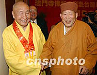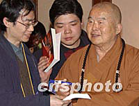 組圖:法門寺佛指舍利赴臺供奉新聞發(fā)布會 2002年02月22日 09:54 ![]() 法門寺佛指舍利赴臺供奉新聞發(fā)布會,日前在西安喜來登大酒店舉行,中國佛教協會等有關人士和臺灣佛教人士以及來自大陸、港臺的眾多記者參加了發(fā)布會。圖為臺灣惟覺法師與法門寺凈一方丈在發(fā)布會上。中新社記者 錢興強 攝 ![]() 法門寺佛指舍利赴臺供奉新聞發(fā)布會,日前在西安喜來登大酒店舉行,中國佛教協會等有關人士和臺灣佛教人士以及來自大陸、港臺的眾多記者參加了發(fā)布會。圖為臺灣星云法師為賓客簽書。中新社記者 錢興強 攝