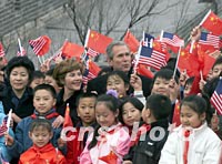 組圖:布什夫婦游覽長城 2002年02月22日 16:02 ![]() 美國總統(tǒng)布什與夫人勞拉二十二日登上北京八達(dá)嶺長城參觀游覽時(shí),與歡迎的少年兒童合影。中新社記者 毛建軍 攝 ![]() 美國總統(tǒng)布什與夫人勞拉二十二日登上北京八達(dá)嶺長城。中新社記者 毛建軍 攝