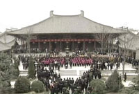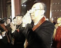 組圖:法門寺佛指舍利赴臺瞻禮恭送法會盛況 2002年02月22日 16:07 世間僅存的釋迦牟尼佛指舍利 ![]() 西安法門寺隆重舉行佛指舍利恭送法會 ![]() 中國佛教協(xié)會副會長圣輝法師在恭送法會上致辭 ![]() 臺灣佛光山星云法師為佛指舍利拈香 ![]() 臺灣社會名流吳伯雄(右)和中國佛教協(xié)會副會長兼秘書長刀述仁為佛指舍利拈香 中新網(wǎng)西安2月22日消息:佛界圣物、西安法門寺佛指舍利即將赴臺供奉瞻禮。今天下午3時(shí)至4時(shí)30分,西安法門寺為此舉得隆重的恭送法會。 據(jù)悉,此次赴臺期間,佛指舍利將巡回臺北、臺中、南投和高雄等地,供佛教僧俗二眾和社會各界瞻仰。