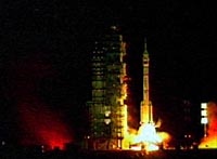 圖:“神舟三號(hào)”實(shí)驗(yàn)飛船順利發(fā)射升空 2002年03月26日 11:02 ![]() 二十五日晚十點(diǎn)十五分,中國自主研制的“神舟三號(hào)”實(shí)驗(yàn)飛船在酒泉衛(wèi)星發(fā)射中心順利升空。