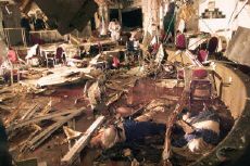 炸彈中混入鐵釘 以色列自殺襲擊死者增至20人 2002年03月28日 08:57 ![]() 爆炸現(xiàn)場一片狼藉(法新社) 中新網(wǎng)北京3月28日消息:以色列電臺今天報道警方新的統(tǒng)計數(shù)字說,北部海濱城市內(nèi)塔尼亞自殺炸彈襲擊造成20人死亡,包括襲擊者本人。 據(jù)法新社報道,警方表示總共有73名傷者入院治療,其中26人傷勢嚴重。最初的數(shù)據(jù)顯示至少有16名以色列人死亡。 當?shù)貢r間27日19時30分左右,一名巴勒斯坦青年混進位于內(nèi)坦尼亞市中心的帕克飯店,在舉行“逾越節(jié)之夜”慶祝活動的人群中引爆了綁在身上的爆炸裝置。由于肇事者在爆炸物中混入了大量鐵釘,因而造成重大人員傷亡。 巴勒斯坦主流派法塔赫下屬的“阿克薩烈士旅”及伊斯蘭抵抗運動(哈馬斯)都宣稱對此次爆炸事件負責。 相關(guān)報道:以色列再遭自殺性爆炸襲擊 15人死亡130人受傷