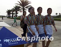 圖:金海岸酒店女服務(wù)員成博鰲論壇亮點 2002年04月10日 19:46 ![]() 海南博鰲亞洲論壇開幕在即,論壇主會場金海岸酒店的女服務(wù)員身著特色服飾,成為博鰲的一道風(fēng)景線。中新社記者 滿會喬 攝