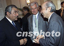 圖:參會前政要出席博鰲論壇閉幕新聞發(fā)布會 2002年04月14日 16:18 ![]() 博鰲亞洲論壇首屆年會十三日在海南閉幕,澳大利亞前總理霍克(中)等前政要等出席年會閉幕新聞發(fā)布會。作者:滿會喬