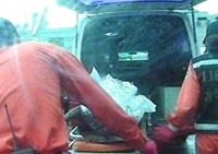 圖:4·15墜機(jī)事件喪生者被送出失事現(xiàn)場 2002年04月17日 10:29 ![]() 17日,在中國國航4·15失事現(xiàn)場,韓國當(dāng)?shù)卣沙鋈Ф嗑仍藛T在大雨后的山上搜索失蹤人員,搜索到喪生者的尸體并運(yùn)送下山。