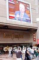 圖:香港時代廣場播發(fā)高官問責制情況 2002年04月18日 19:31 ![]() 香港特區(qū)行政長官董建華四月十七日下午在立法會解釋有關高官問責制的情況。圖為大屏幕播出的有關新聞吸引了市民。中新社記者 任海霞 攝